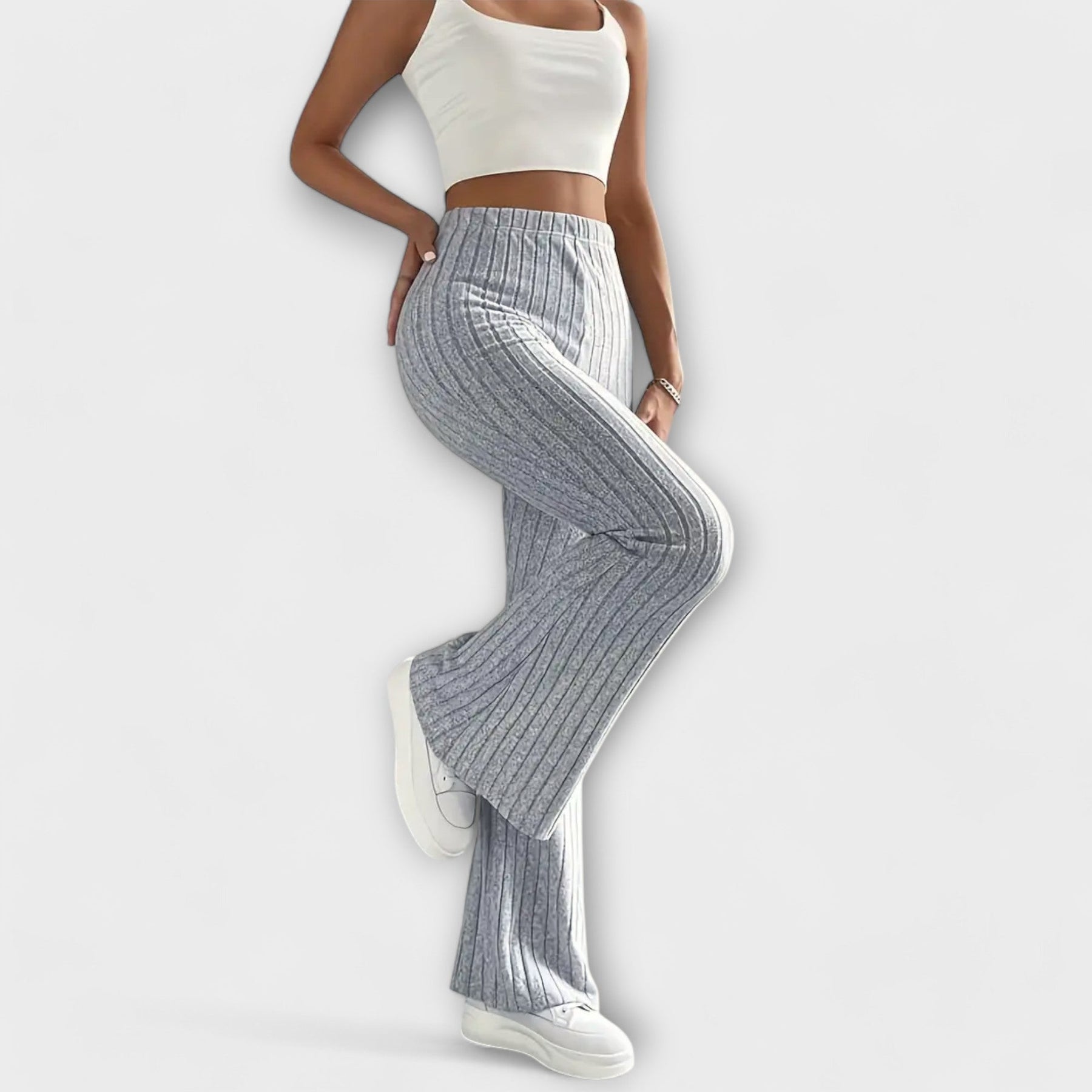 Luretta verbindet modernen Komfort mit femininer Linienführung – der ausgestellte Schnitt streckt optisch das Bein, während die dezente Struktur dem Look Tiefe verleiht. Der elastische Bund sorgt für angenehme Passform, ob beim Stadtbummel, im Homeoffice oder entspannt auf dem Sofa.