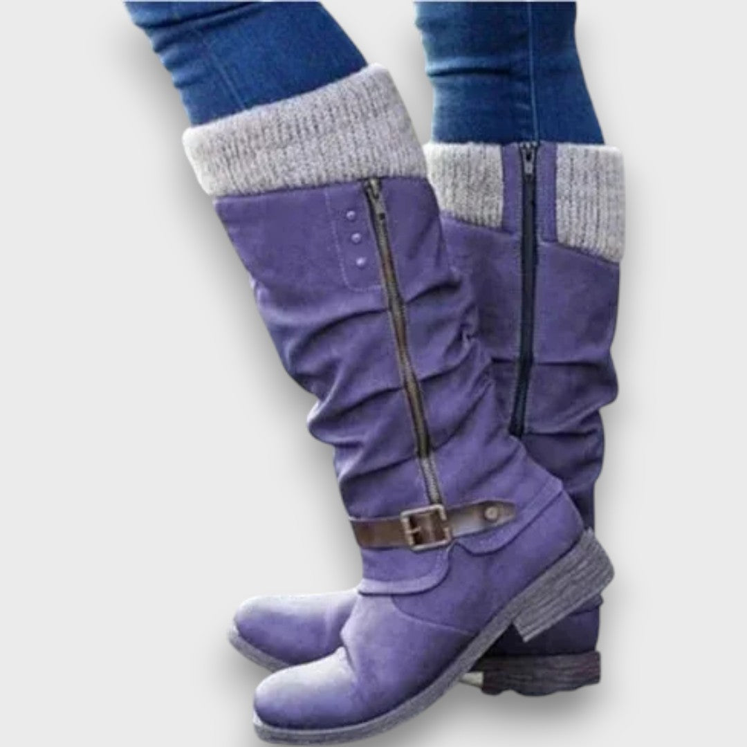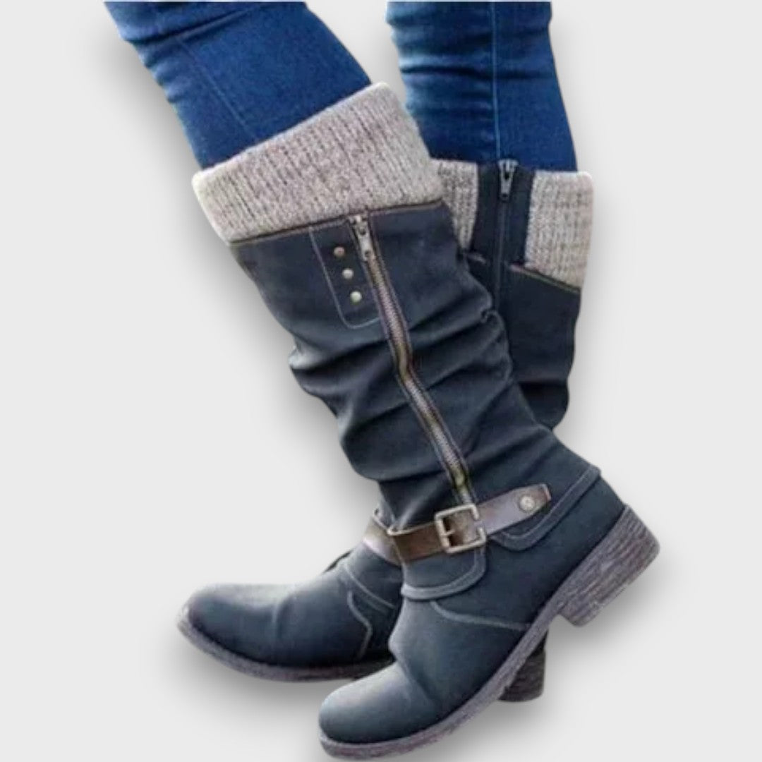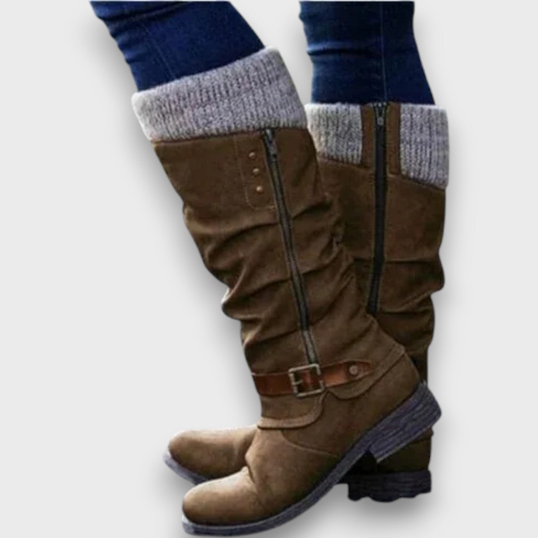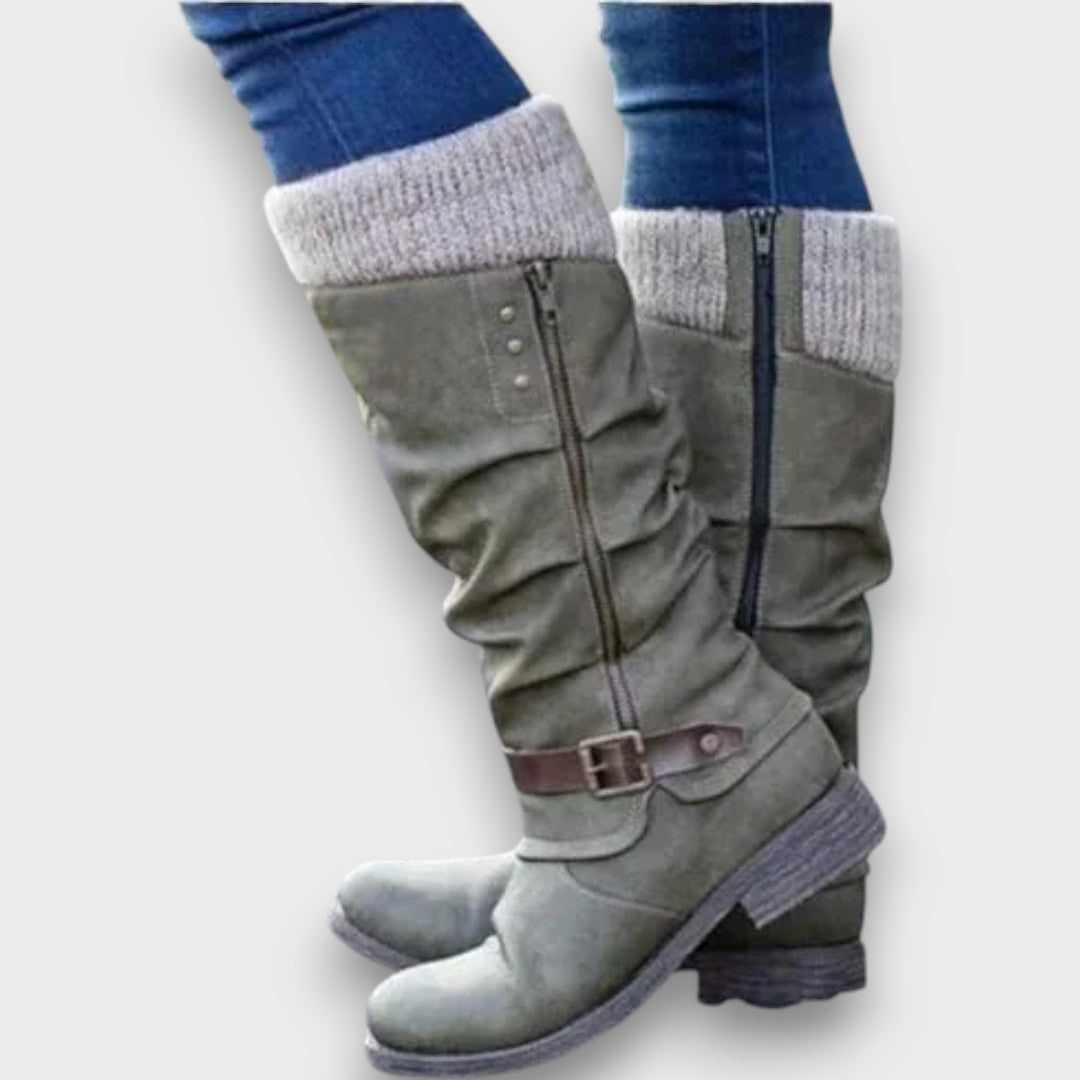Diese Stiefel verbinden modernen Stil mit wohltuendem Komfort. Das weiche Innenfutter und die ergonomisch geformte Sohle entlasten deine Füße bei jedem Schritt. Mit den seitlichen Schnallen und dem leichten Faltenwurf erhalten sie eine elegante, gleichzeitig lässige Note – perfekt für kalte Tage und lange Wege.