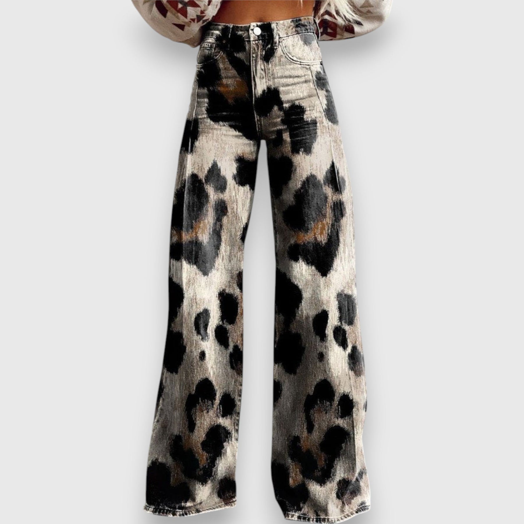 Tavira ist nicht einfach nur eine Jeans – sie ist Ausdruck von Freiheit, Mut und Individualität. Der künstlerische Wildprint zieht die Blicke auf sich, während der bequeme, weite Schnitt für entspannten Tragekomfort sorgt. Hoch tailliert und fließend geschnitten, verleiht sie deinem Look eine kraftvolle, modische Attitüde.